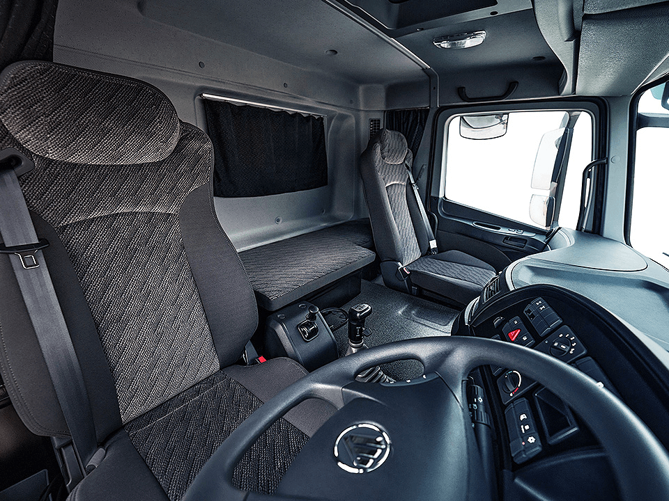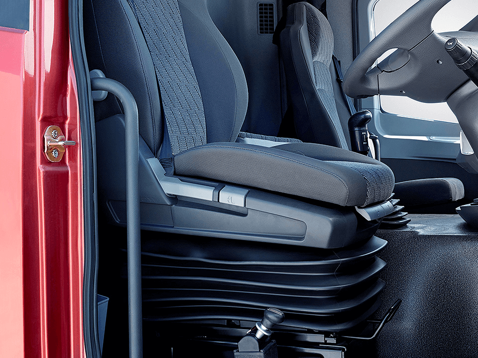 Mais fiabilidade com o eixo de aço fundido de 16T da 4ª geração. Maior capacidade de carga com o eixo dianteiro de 9T melhorado com tecnologias Benz.